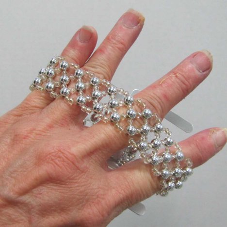 The knotted ribbon holds the silicone square to the corsage bracelet.
