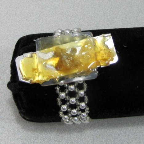 For the glue method, I folded down the aluminium tabs and spread the glue on top of the surface. You have to work quickly. If you'd rather take your time, spread the glue on one leaf at a time and apply to the corsage bracelet surface.