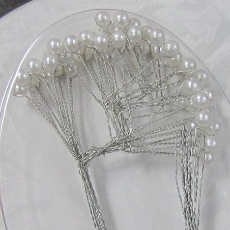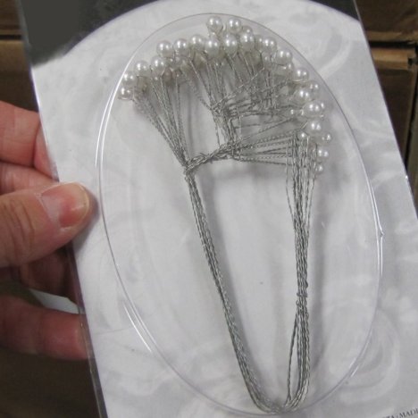 These pearls are wired individually and have several laterals apiece. You can cut them apart with wire cutters and glue them into the design with floral adhesive.