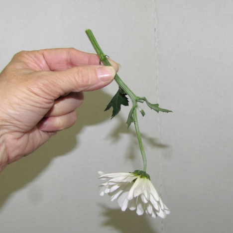 As you insert your stems, always have a clean cut with the knife and gently push into the foam. Never jab sharply or you may hit the stem of another flower and damage the cell structure of the stem.