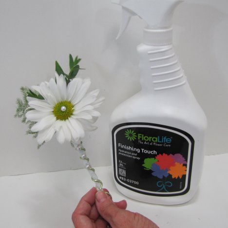 I complete this daisy boutonniere tutorial by spraying every flower with a sealant such as Finishing Touch. This helps keep the petals hydrated even though they don't have a water source.