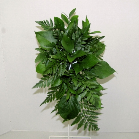 If you look on the back, you'll see open slots where you can insert more greens. These are usually filled "good side out" - so that when you look under the bouquet you see the "good" face of the greens, making your bouquet beautiful from both back and front.
