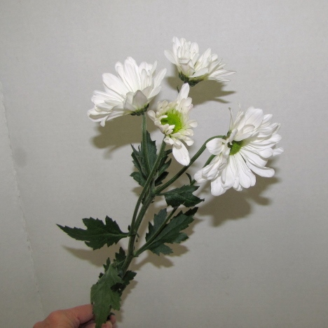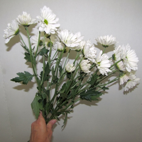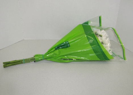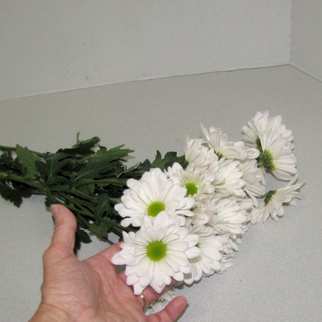 Chrysanthemums have a hard, slightly woody stalk. Be careful when unpacking not to scar the stems if possible. This would allow bacteria into the stem and decrease the life of the blooms. Cut the rubber bands off, slit the plastic sleeve and gently untangle the flower heads apart.