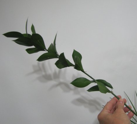 I'm going to add a little more texture and design interest with another great greenery - Israeli Ruscus. It has a little more broad and rounded leaves than the Italian Ruscus I have used in so many other tutorials.