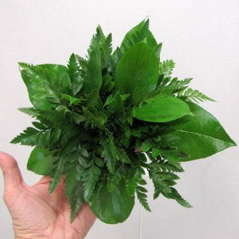 Leather leaf has lots of individual fronds and separates very easily for insertion into bouquet holders, making it so only two or three stems of fern is needed to quickly green in a bouquet.