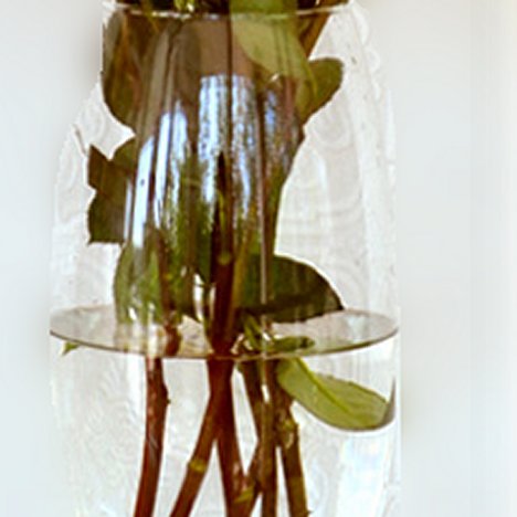Place your first cleaned rose stem into your prepared vase. Vases that have flared necks are usually easier for beginners to design in.