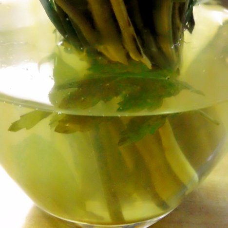 Leaves under the water line can quickly turn into greenish, bacteria laden water.