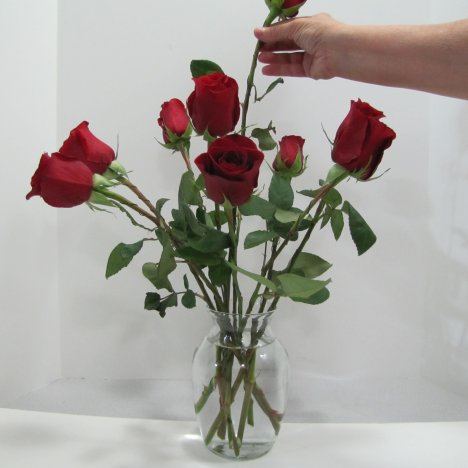 As you insert these final roses, take care to work the remaining roses into the design without disturbing the other roses.