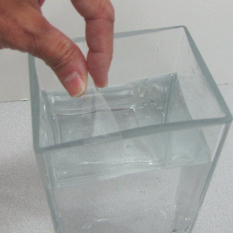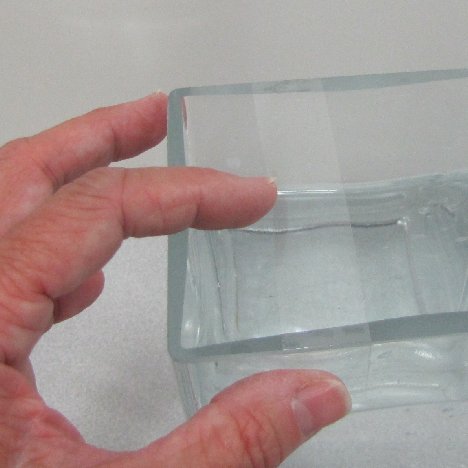 Regular clear tape on a dispenser can be used in a pinch, but is generally a little wide for floral work. (Do not use the tape that has a "frosted" look). Pull the tape across the vase and overlap the DRY sides of your clear vase.