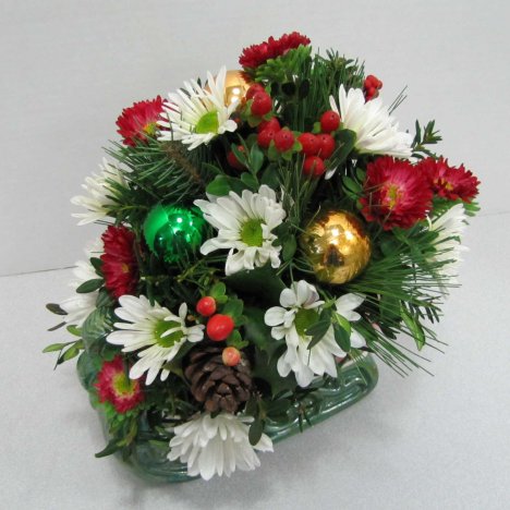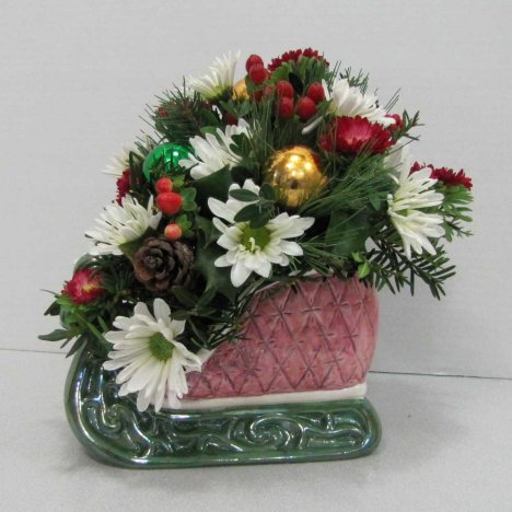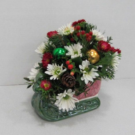 This design should last quite a while with a little care. Don't place it in too warm of area, as the heated house in wintertime can dry out arrangements in a hurry.