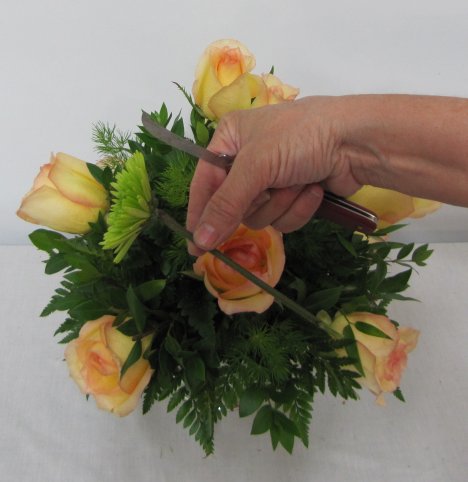 I cut this lateral off the main stem and am going to begin inserting them in between the roses.