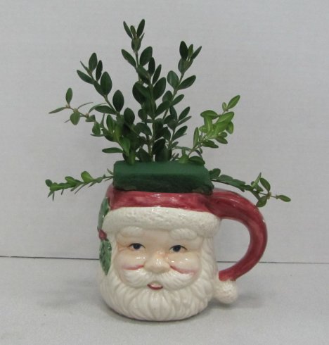 I love using boxwood in both my everyday and my Christmas centerpieces. This dainty greens lends itself especially to the smaller containers like novelty mugs and ceramics.
