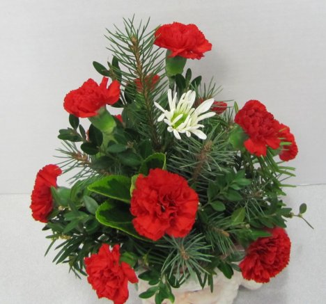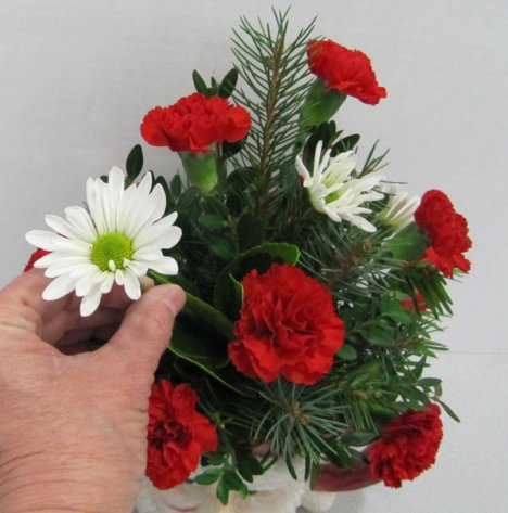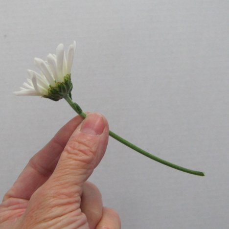 Both daisies and pomp mums come from the Chrysanthemum family. Again I'm paying attention to the natural curve of the flower stem and will use it to advantage when inserting it into the flower design.