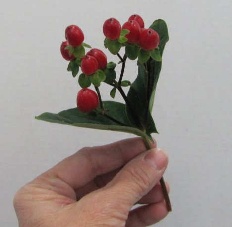Hypericum are natural berries that are available all year round. Florists especially covet them during holiday season because the red, burgundy and white berries add a nice finishing touch to any holiday piece.