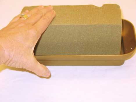 I want to be certain that the foam stays adhered to the bottom, so I use Florist clay known as Cling.