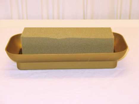 The foam brick should be a couple of inches above the edge of the container. This is so side insertions of flowers can be done at a slight upward angle, allowing the tips of the greens and flowers to lightly brush the table top. That's why florist consider this utility containers a "no show", meaning the flowers usually cover the container, concealing that it is made of cheap plastic.