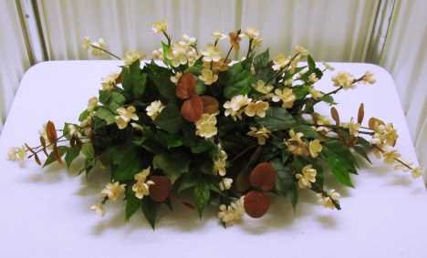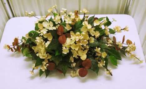 Your fall centerpiece can easily contain other brighter colors if you wish. Don't feel limited to the ivory blossoms you see here. Use oranges, purples and other fall colors if you want.