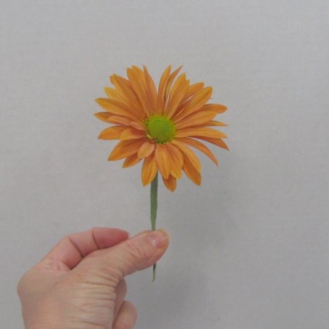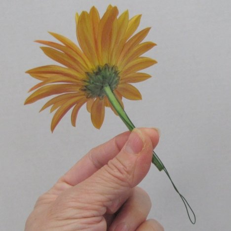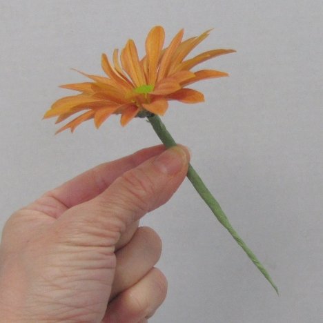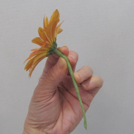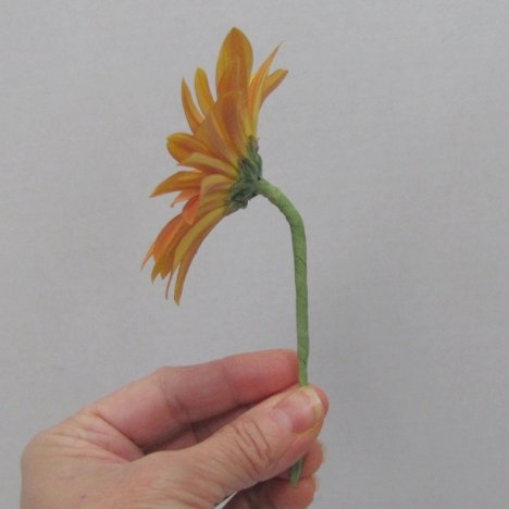 Once wired and taped, you can bend the head of the flower forward, being careful not to snap the flower head off the stem.