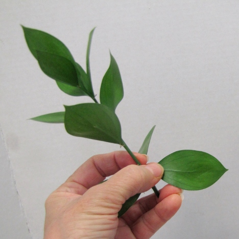 Israeli ruscus is a long, tapering greenery with glossy green leaves. I love using it in all kinds of wedding work, including altar sprays, candelabra flowers, cascading bridal bouquets and (as I'll show you here) in both corsage and boutonniere work.