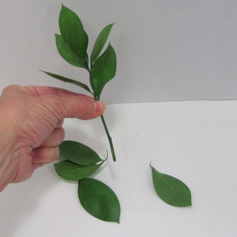 I first strip off a few of the bottom leaves and set them aside to wire individually if needed.