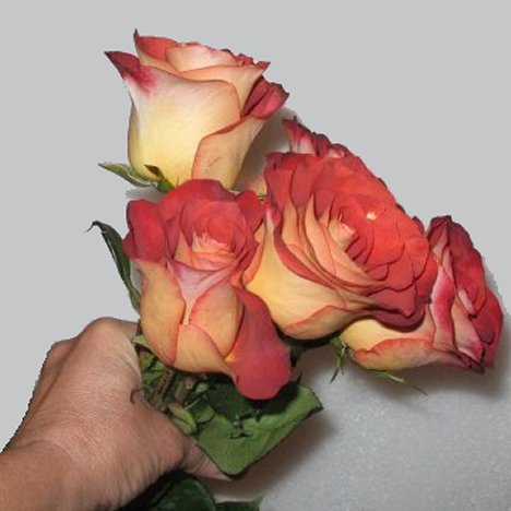 I'm using three different roses colors in this fall bridal bouquet. First is a deep red rose.
