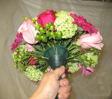 Don't forget to frequently check your design from the side, so the bouquet looks well rounded and that the flowers face outwards in all directions.
