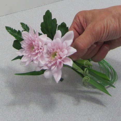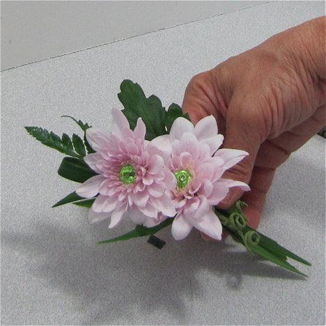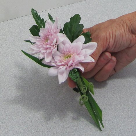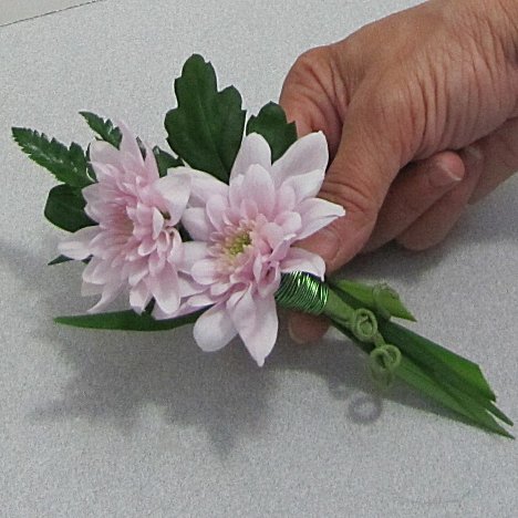 Those are the simple instructions for making a mum boutonniere. You can substitute daisies if you wish. Other flowers, such as roses or carnations, are simply wired a little differently, but the other steps are basically the same.