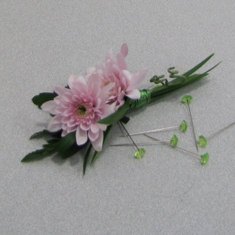I wanted to add a little pizzaz by adding the sparkle of diamante pins. These 2" pins have to be cut before inserting into the center of the flower and the boutonniere stem.