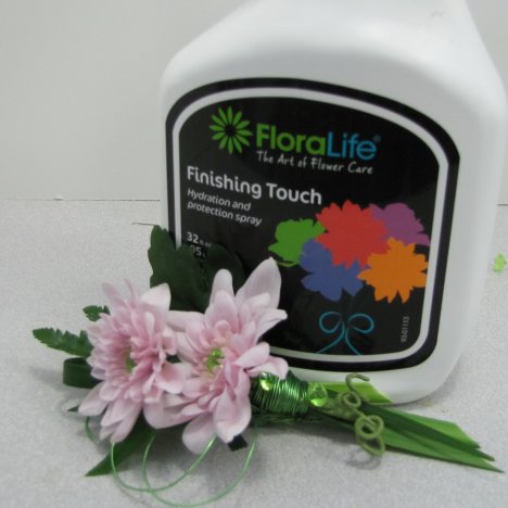 It's fun to add color and shine to both boutonnieres and corsages with this great product. Begin in the back by piercing the cut end into the back of the boutonniere and burying it into the design.