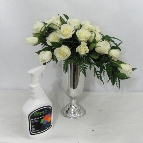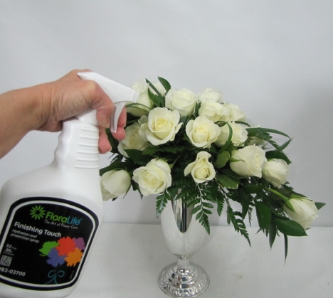 I also use a flower sealant called "Finishing Touch". This is misted undiluted on the flower heads, sealing the petals against moisture loss.