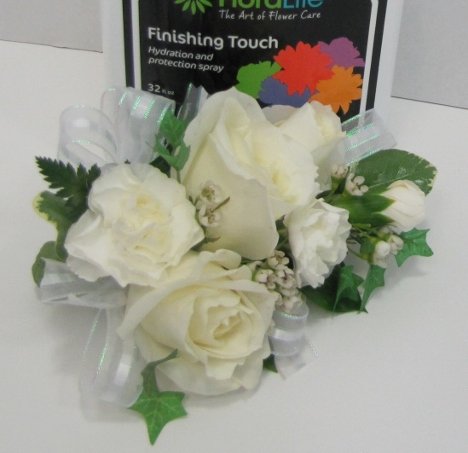 I finish all my wedding designs by spraying with a flower sealant such as Finishing Touch.