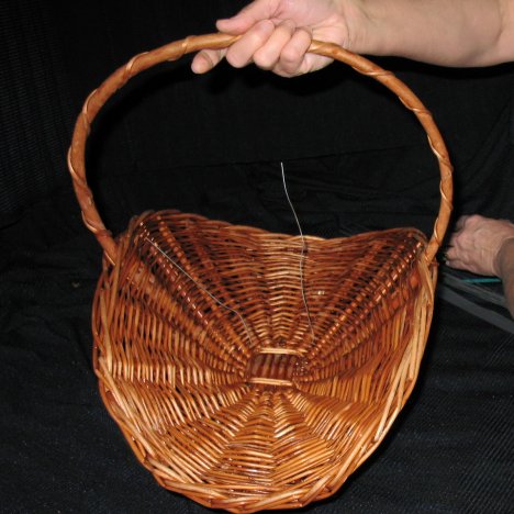 I doubled the wire into a large hairpin bend and then pushed the two cut ends through the bottom of the basket. Do the same for both sides.