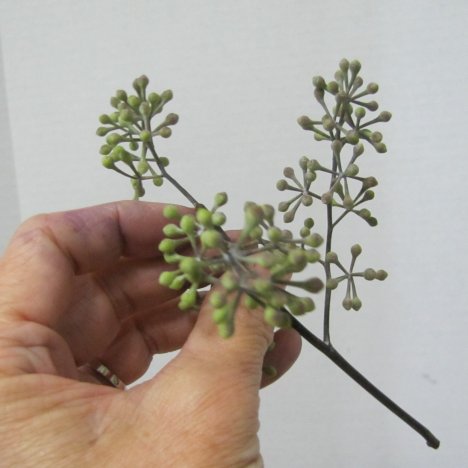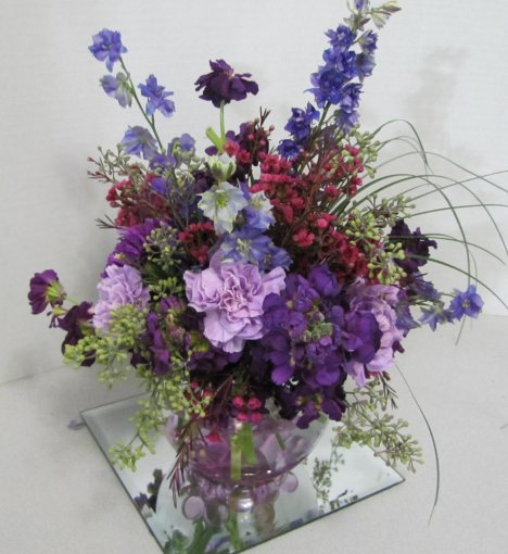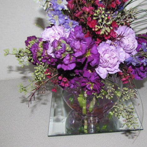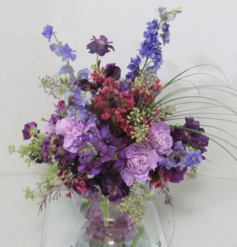 Allow them to hang down. I love the pale green of the seeds contrasting with that deep purple of the stock flower.