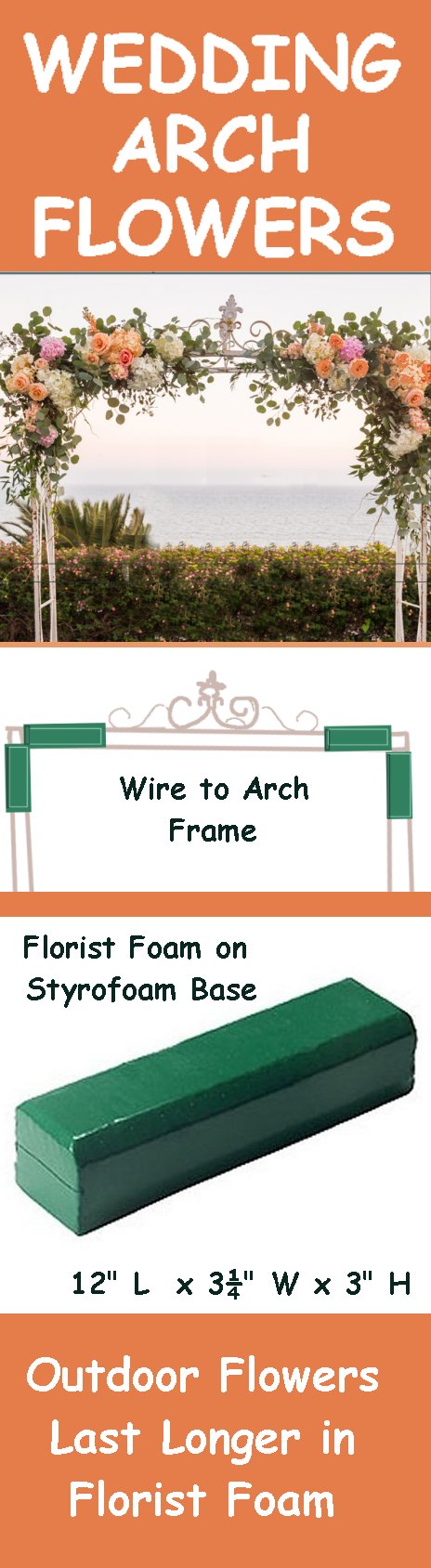 Outdoor wedding flowers need a water source - otherwise they will wilt quickly in the outdoor air. Spray bars are a long brick of Max-Life Florist foam with a styrofoam base, all wrapped in a dark green poly film that helps slow water evaporation.
