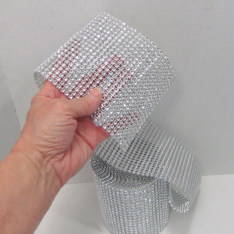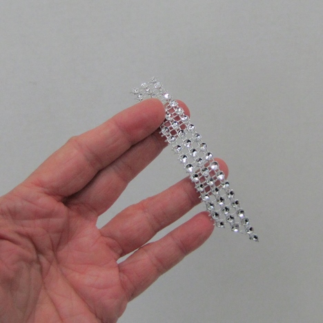 This product look like rhinestones, but it is actually a silver toned "ribbon" stamped out of acrylic. It is inexpensive and impervious to water.