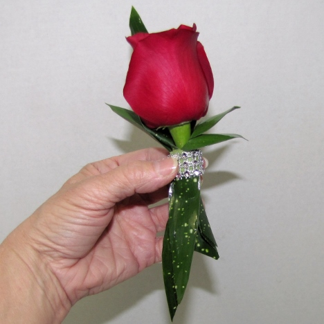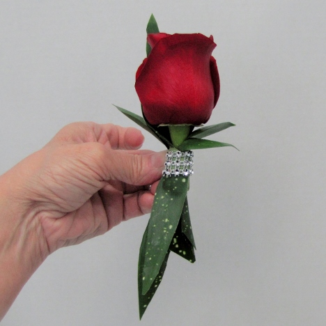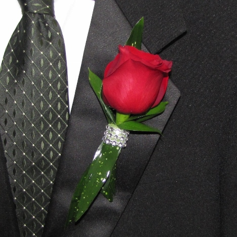 It takes just a little to add a beautiful sparkle to this simple rose boutonniere.