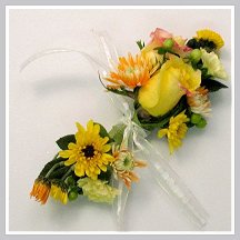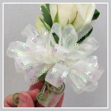 This flower corsage can be wired and taped, being worn on the wearer's left shoulder or on the wrist. Wrist corsages are the most popular, and a variety of corsage bracelets or creating your own with decorative wire can give you a very unique look.