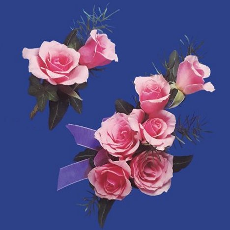 This lovely set of rose corsage and matching boutonniere is simple to make. If you haven't designed flowers before, check out the beginning galleries for both boutonniere and corsages. Step by step photos guide you through from wiring and taping as well as the newer method of gluing corsages.