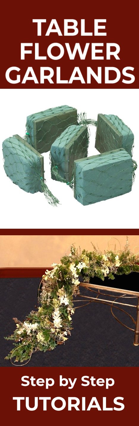 Adding in gold decorative wire adds a gleam of richness to any table flower garland. See how the design can now fall gracefully over the edge of the table since the netted garlands will allow this flexibility.