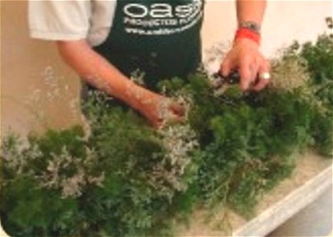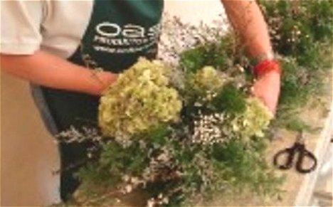 First you'll need to green in the flat blocks of Oasis foam. Allow the garland foam to "float soak" - which means you place it face down in the water tube and allow it to draw up water naturally. If you try to force it under to make the process quicker, you can cause air pockets in the foam. These dry pockets means faster wilting for any flower stem unfortunate to be inserted in that area of the foam.