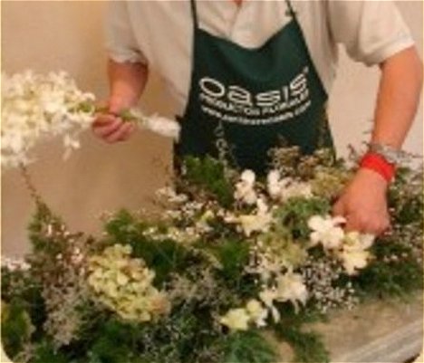 Here the designer is inserting lush dendrobium orchids, which is absolutely stunning. But remember - exotic flowers will cost you a lot more in a design this long if packed with expensive flowers.