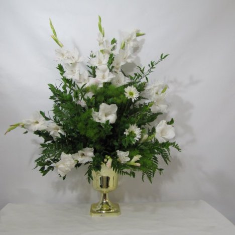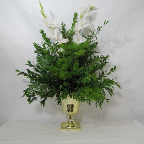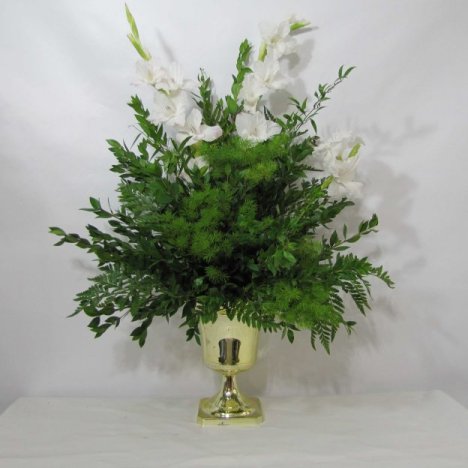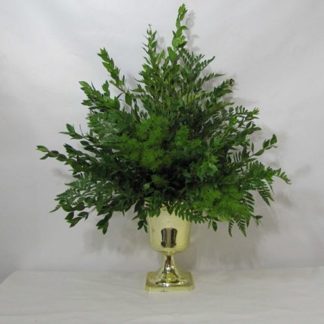 Just one or two stems placed directly in the center of the other greens is enough to give this urn an extra "wow" factor.