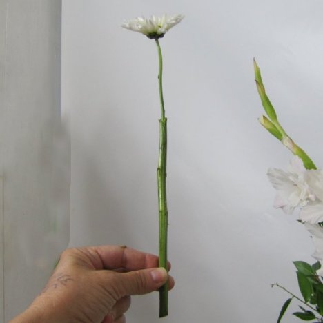 If you use daisies in large wedding florals, it may be necessary to extend the stem so they are longer. Daisies and other members of the chrysanthemum family sometimes have several shorter laterals on one long stem. This simply means one stem - shooting off into several sprays of flower heads. You can use extended water tubes.