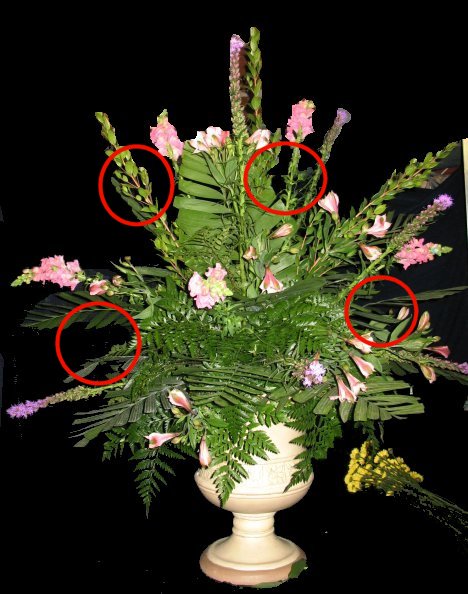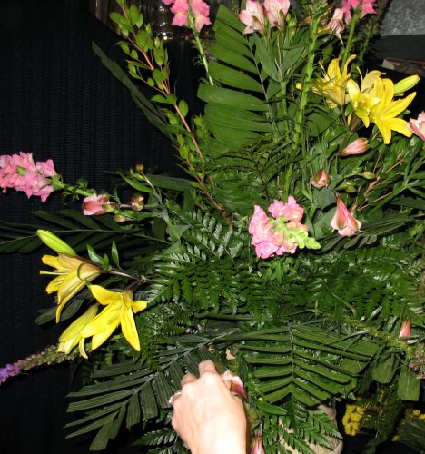Step back and look at your overall design to be sure you are distributing the flowers equally.