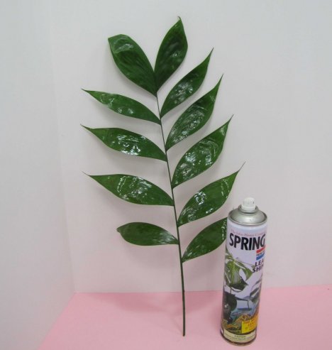 Greenery often has a murky white residue (usually from hard water residue). Florists use a plant polish leaf spray to give the leaves an attractive glossy green finish.