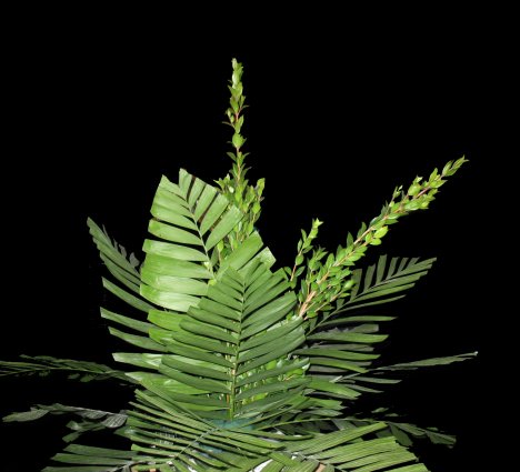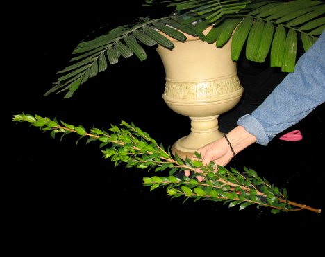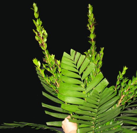 I love using a mix of different greenery. This gives texture and height to the overall arrangement. Myrtle has long lines that look great in very large florals.