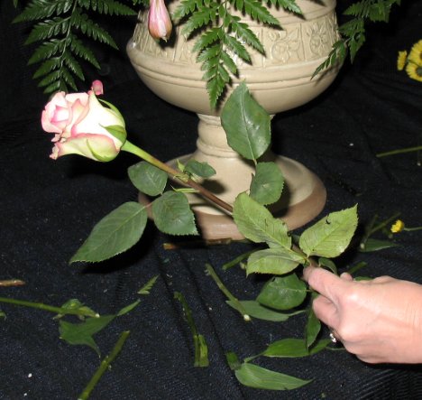 Remove the bottom thorns or they'll catch on your other flower heads and greenery when you insert into the design.