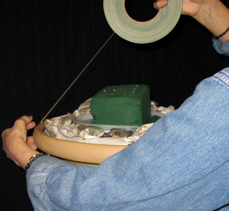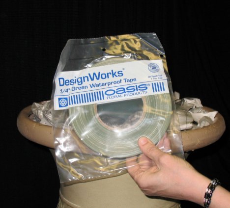 Designing flowers for a wedding uses basic tools. One important florist tool is waterproof tape. I use this tape as the last step in making sure my Oasis foam is secure and doesn't slide around.