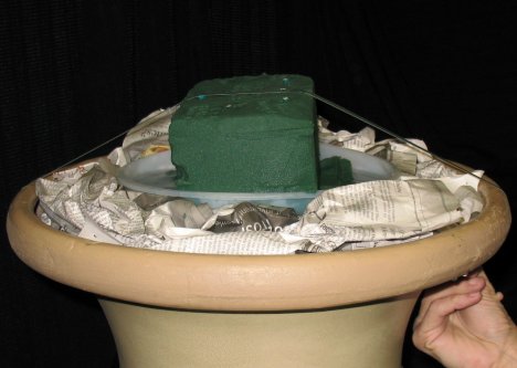As you can see from a side view, there is plenty of foam above the container lip to insert flowers and greenery from the sides.