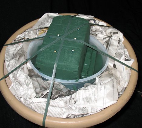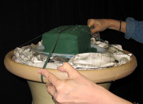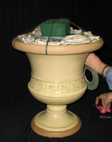 The waterproof tape will be concealed later by the greenery and flowers. Concealing your mechanics is always the mark of a good designer.